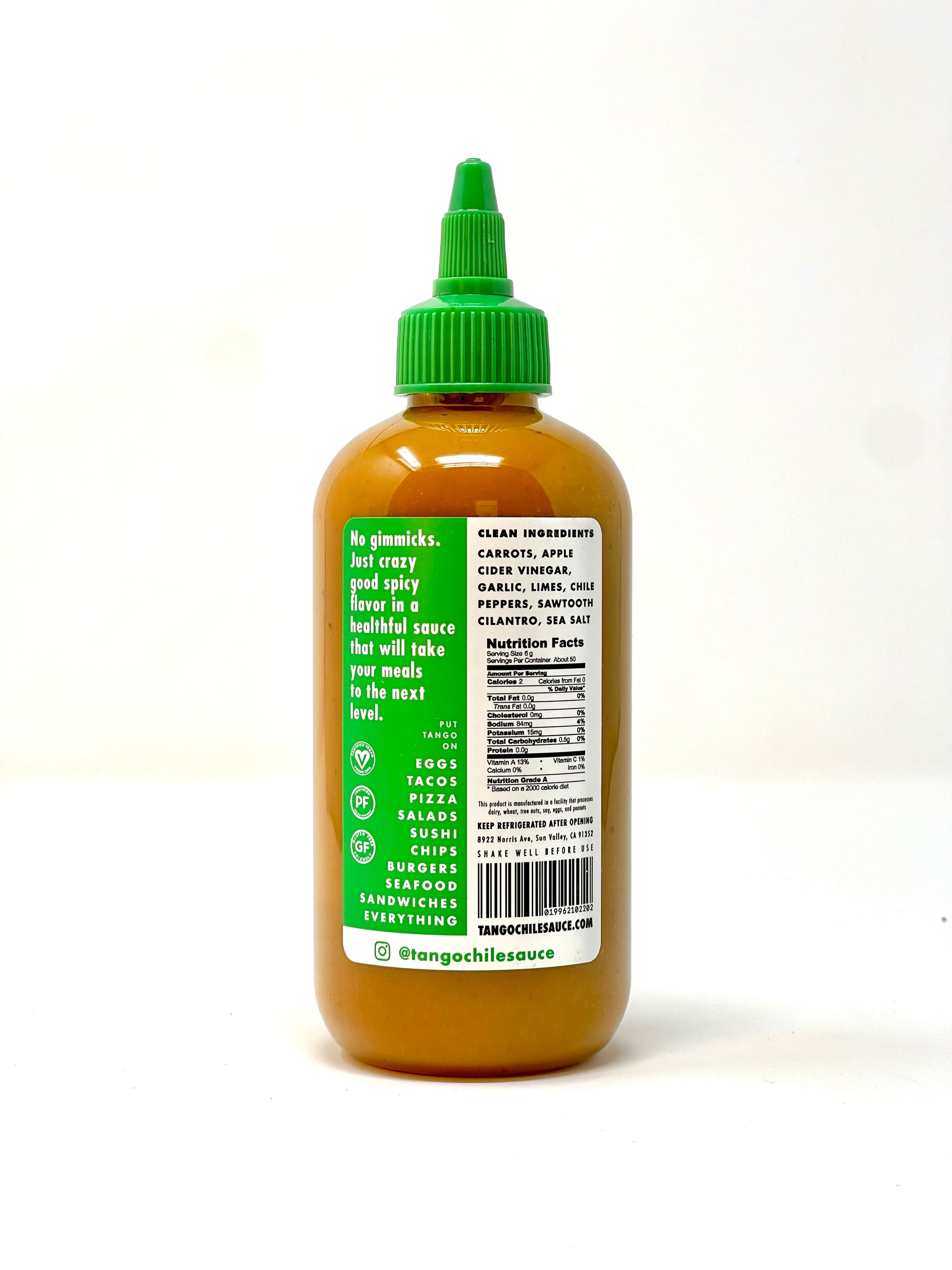 Mild Tango is the perfect hot sauce for beginners. The subtle sweetness of the carrots and gentle spiciness of the scotch bonnet peppers works on everything. Kids can't get enough of it. Great on salads.